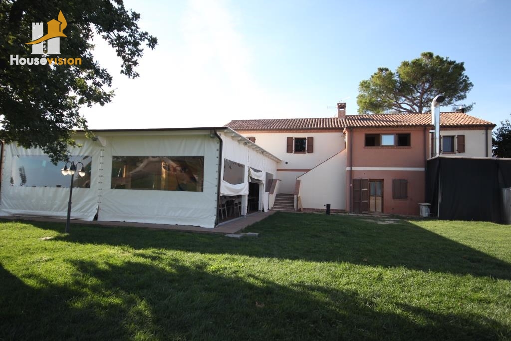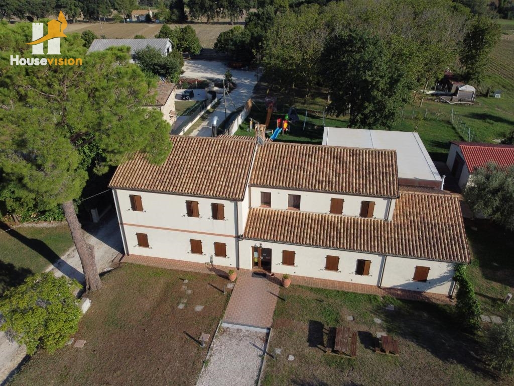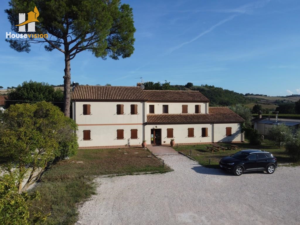 Completely renovated farmhouse for commercial use but also suitable as a private home due to its characteristics. The typical Marche farmhouse style has been deliberately preserved, with buildings of different heights and an external staircase leading to the first floor.
