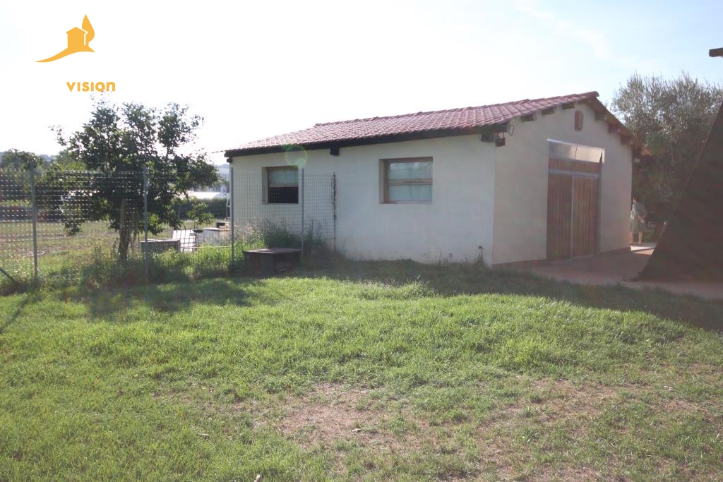 In addition to the main building, which has a total floor area of 400 square metres, there are two other structures: a 58-square-metre tool shed, which can also be used as a garage, and another 38-square-metre storage room with a wood-burning oven.